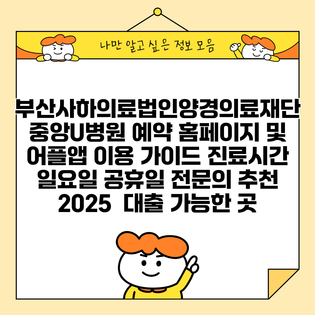 부산사하의료법인양경의료재단 중앙U병원 예약 홈페이지 및 어플앱 이용 가이드 진료시간 일요일 공휴일 전문의 추천 2025 대출 가능한 곳
