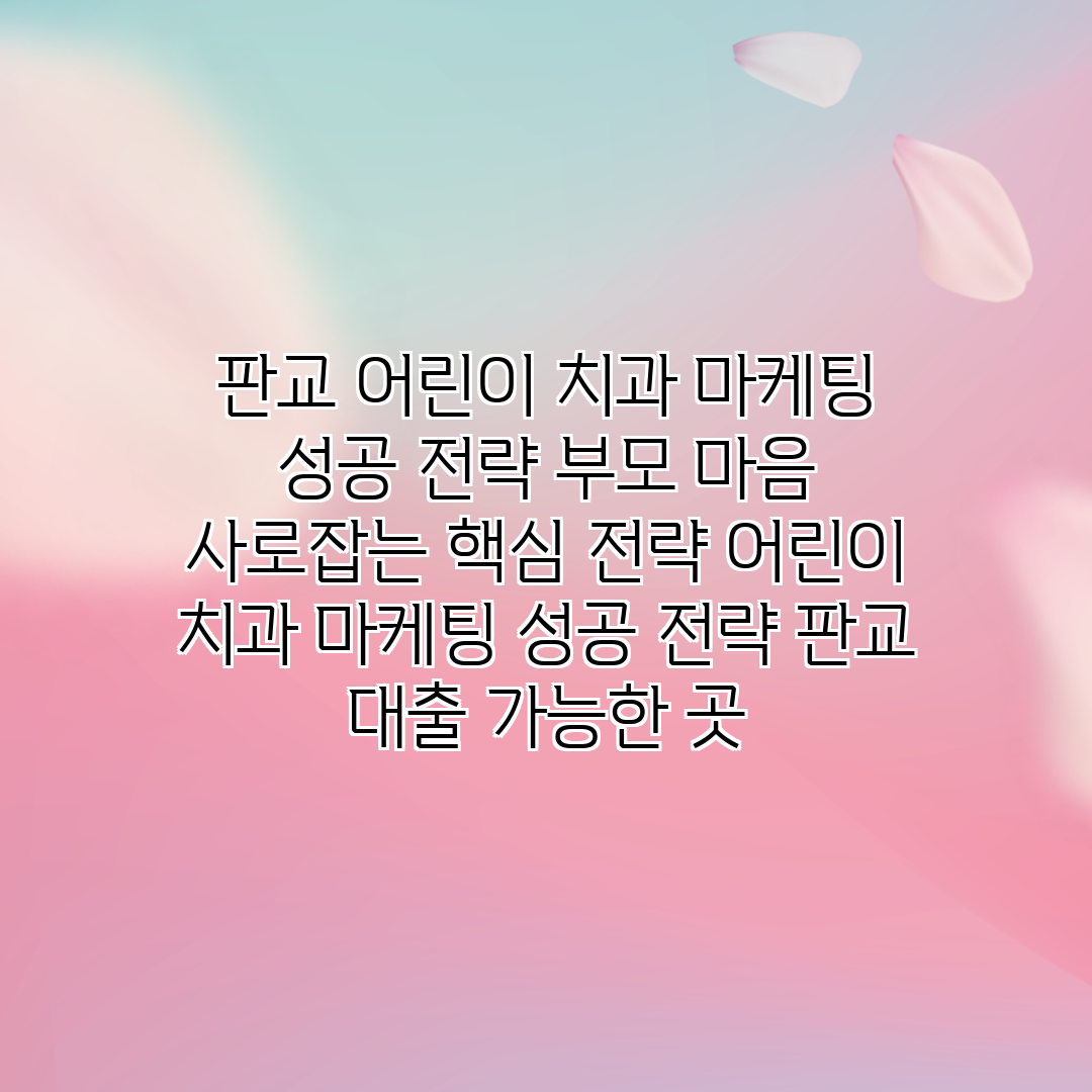 판교 어린이 치과 마케팅 성공 전략 부모 마음 사로잡는 핵심 전략 어린이 치과 마케팅 성공 전략 판교 대출 가능한 곳