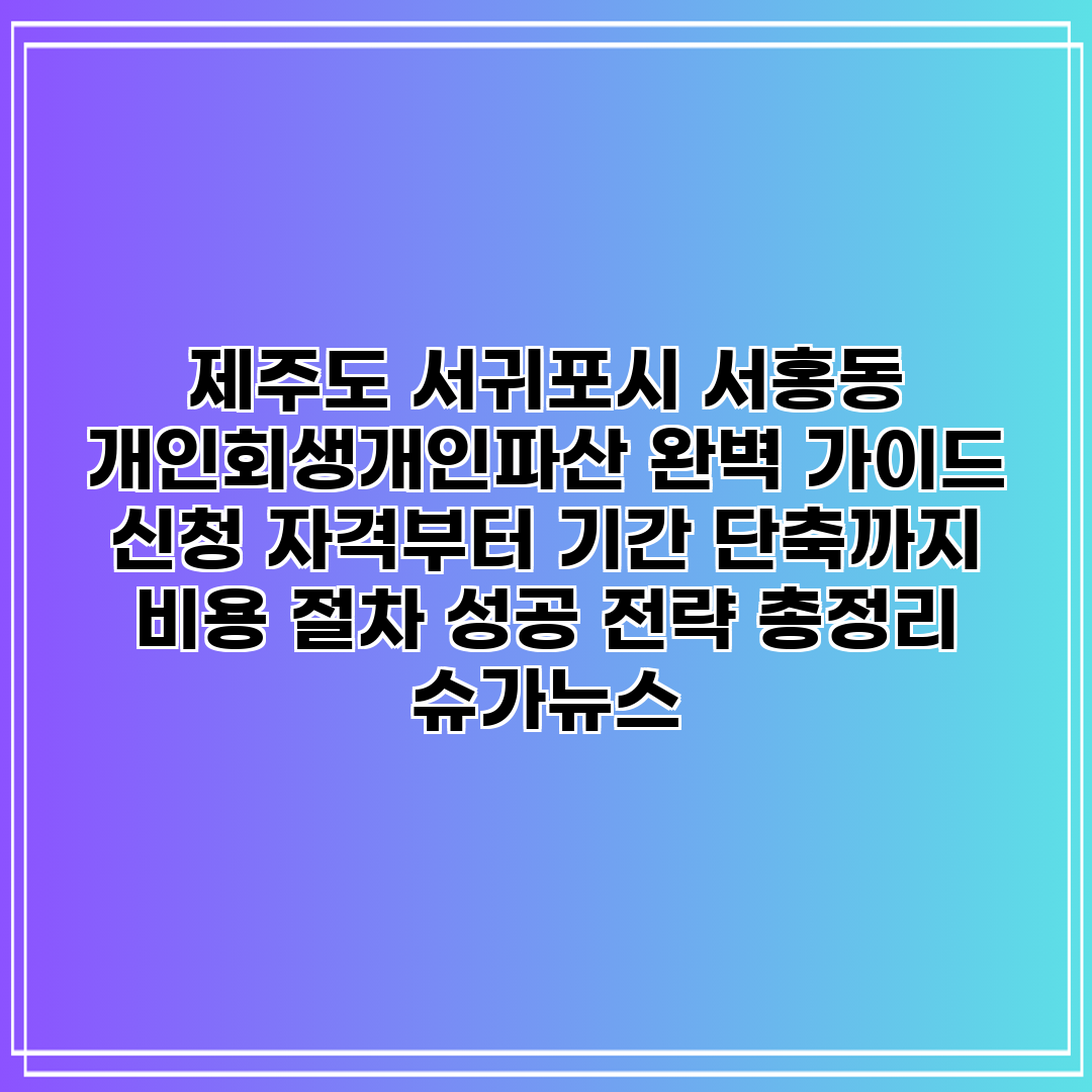 제주도 서귀포시 서홍동 개인회생개인파산 완벽 가이드 신청 자격부터 기간 단축까지 비용 절차 성공 전략 총정리 슈가뉴스