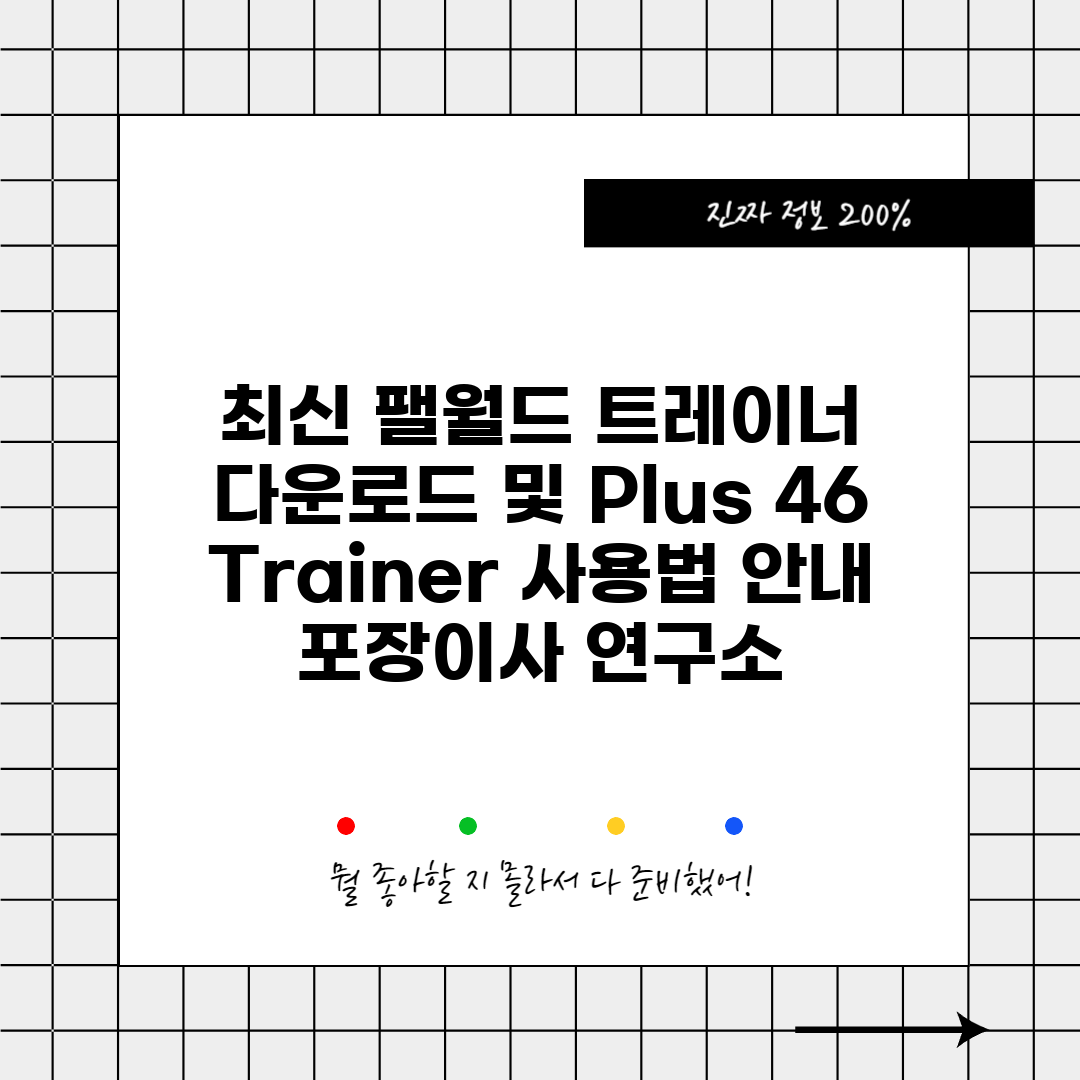 최신 팰월드 트레이너 다운로드 및 Plus 46 Trainer 사용법 안내 포장이사 연구소